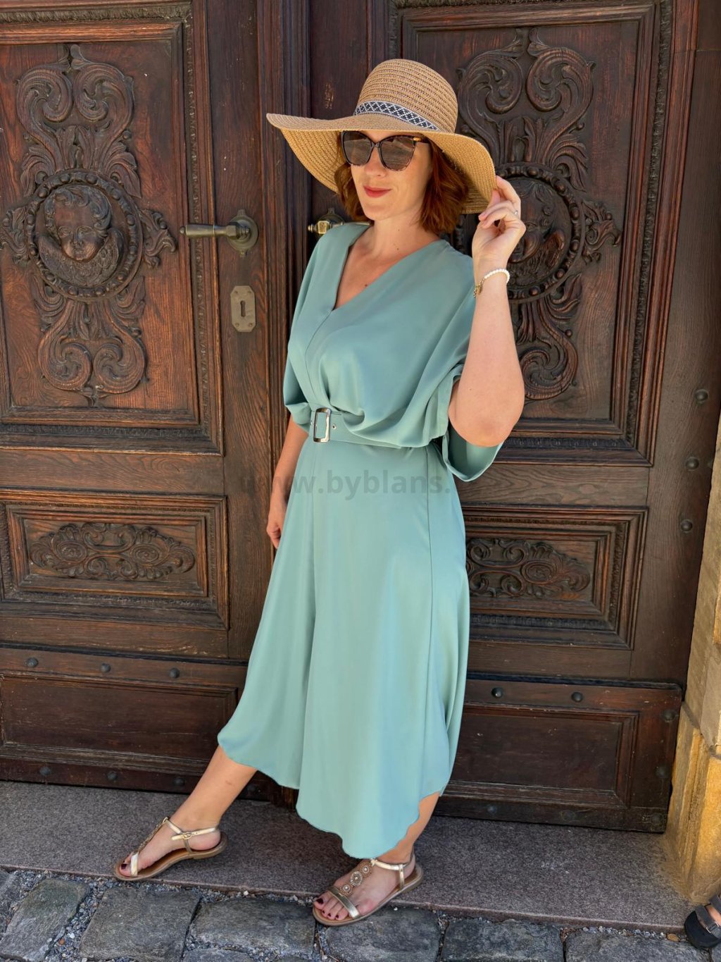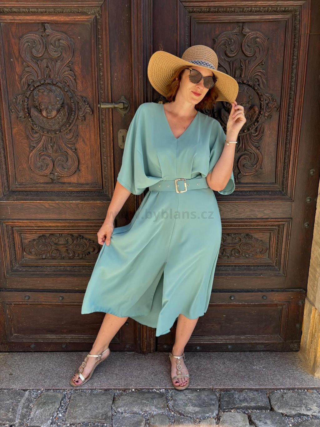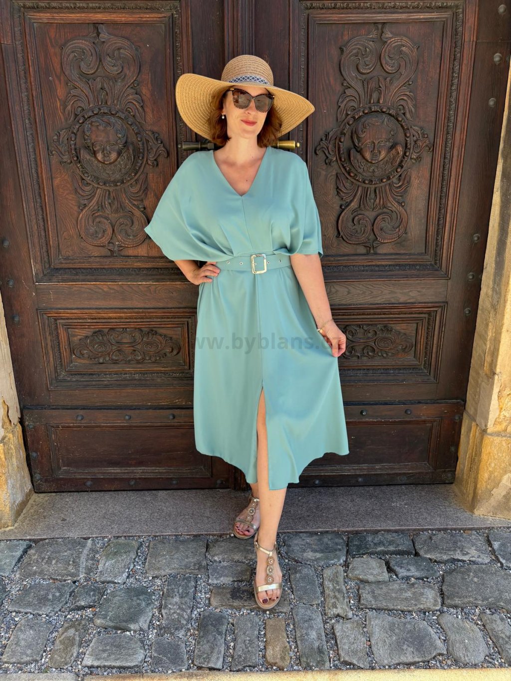 Elegantní šaty s páskem a netopýřími rukávy. Vzhledem k materiálu jsou ideálním kouskem např. na letní slavnost či svatbu. Velikost UNI (sedne na S - XL). Modelka měří 168 cm a běžně nosí velikost M/L.