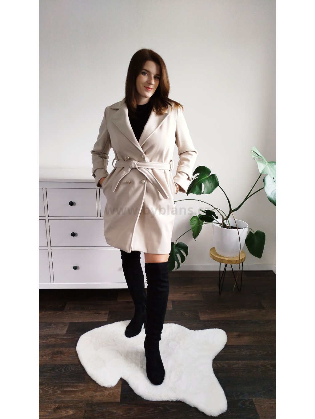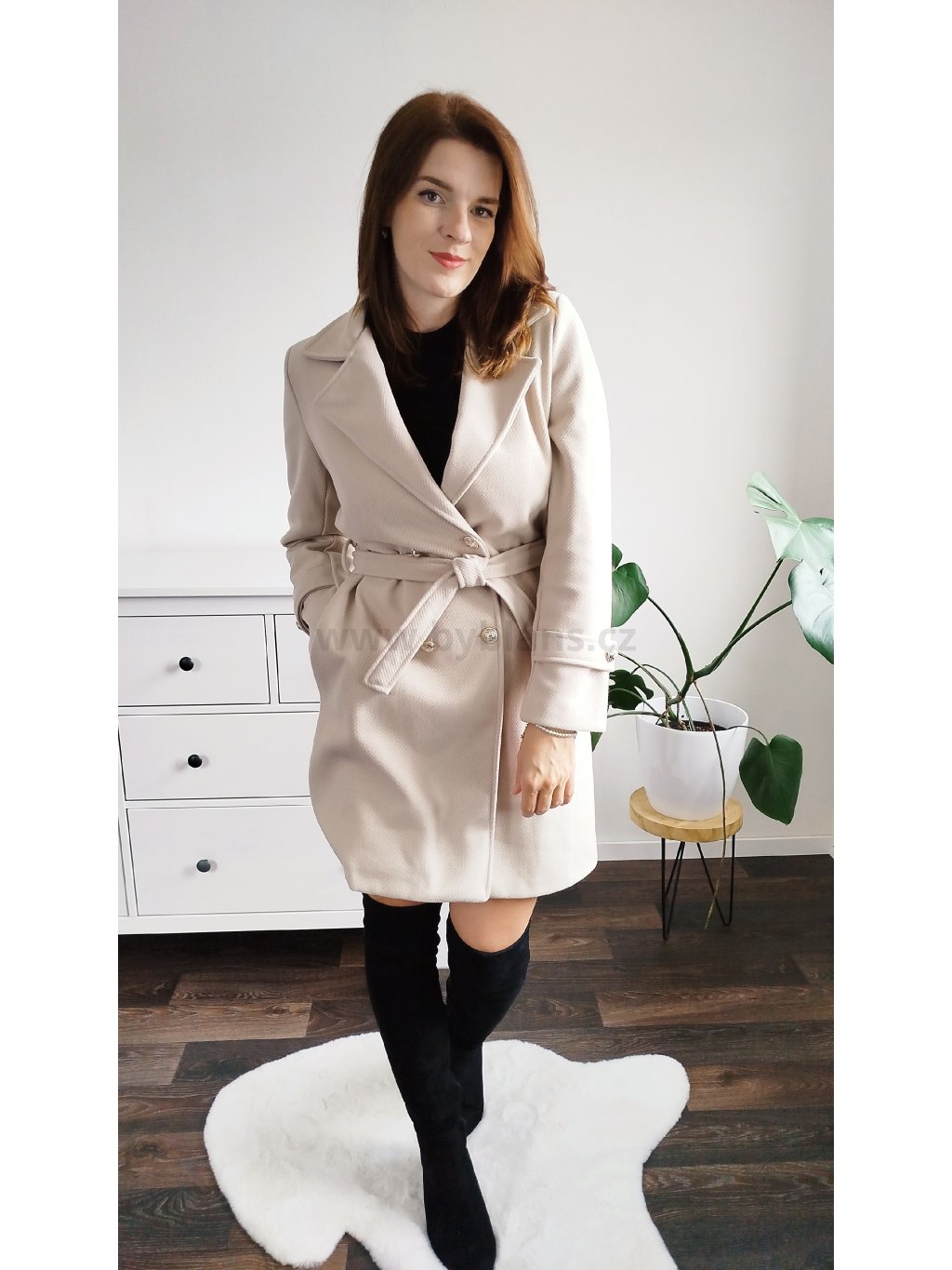 Elegantní béžový kabát LUXURY