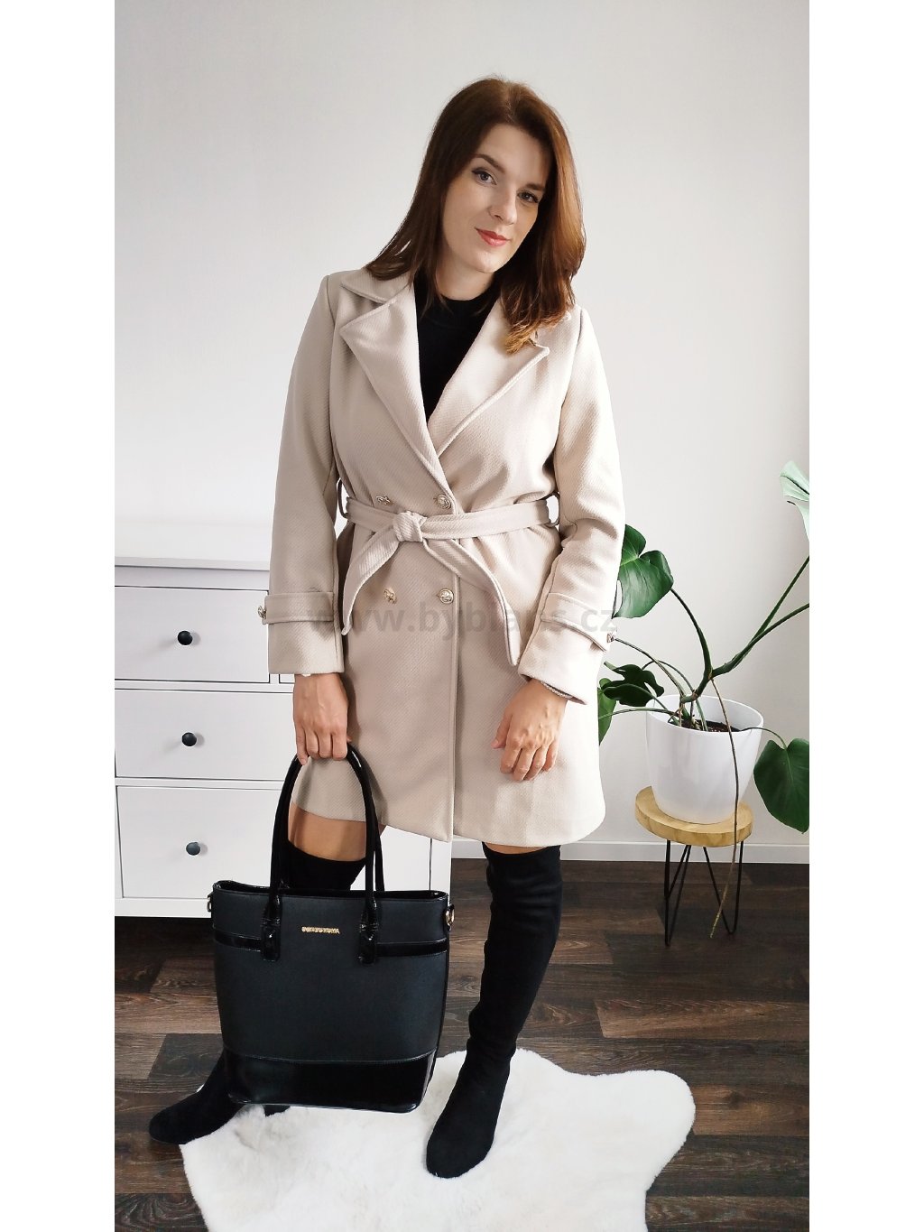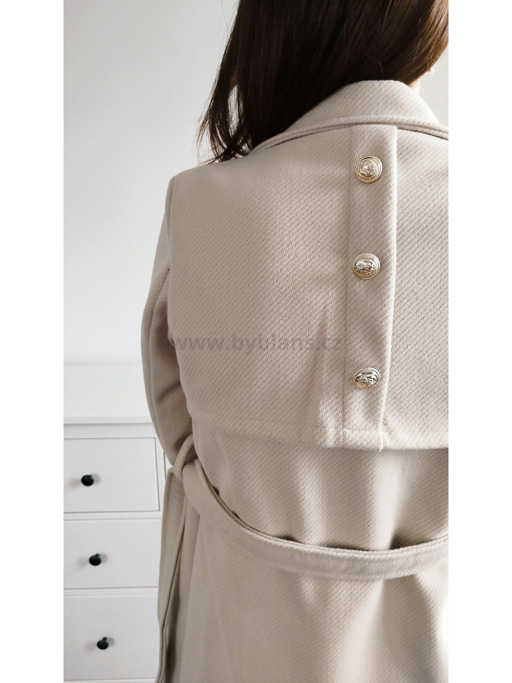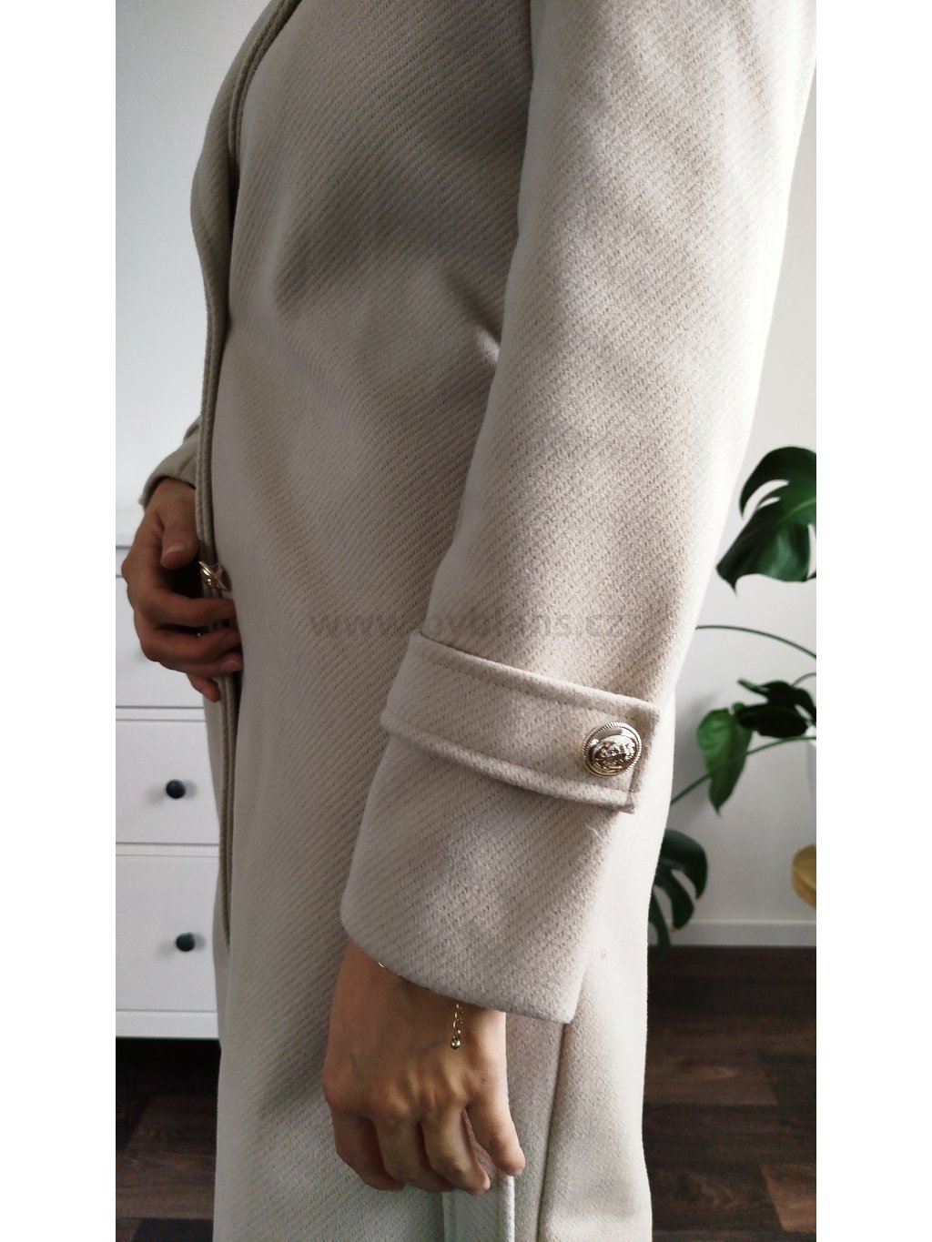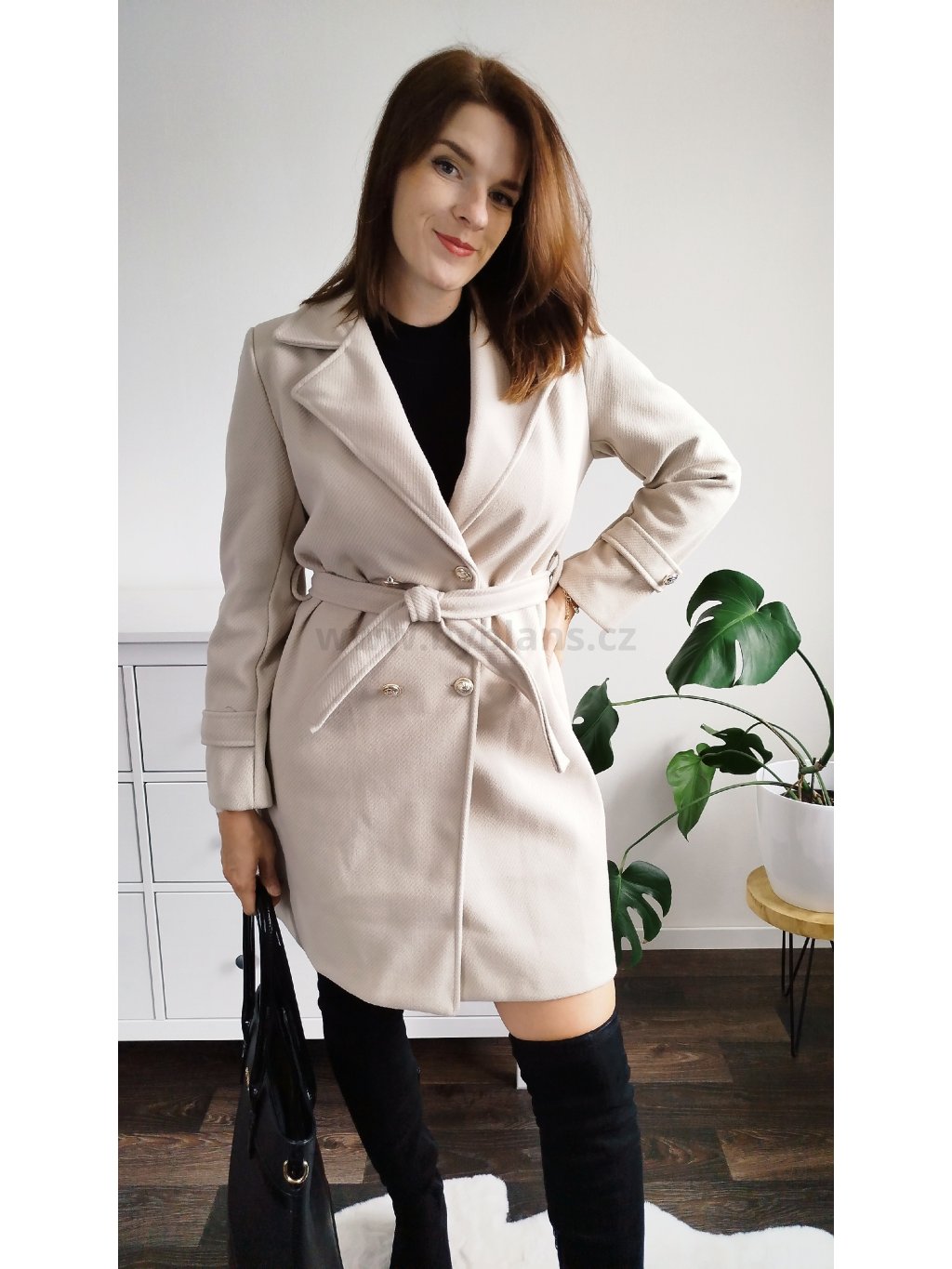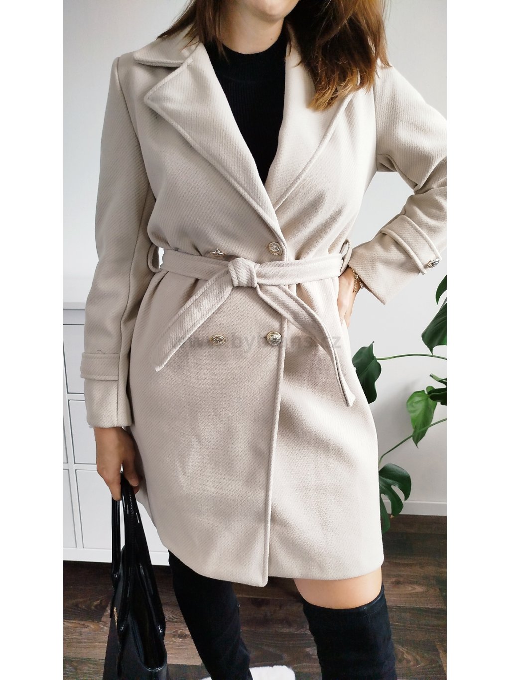 Máš ráda elegantní styl? Pak ve tvém šatníku nesmí chybět tento boží kousek! Decentní béžová barva a zlaté knoflíky pozvednou tvůj celkový look o level výš. Kabát je s podšívkou a má kapsy na bocích. Velikosti S – XXL. Modelka měří 170 cm a běžně nosí velikost M/L, na sobě má vel. L.