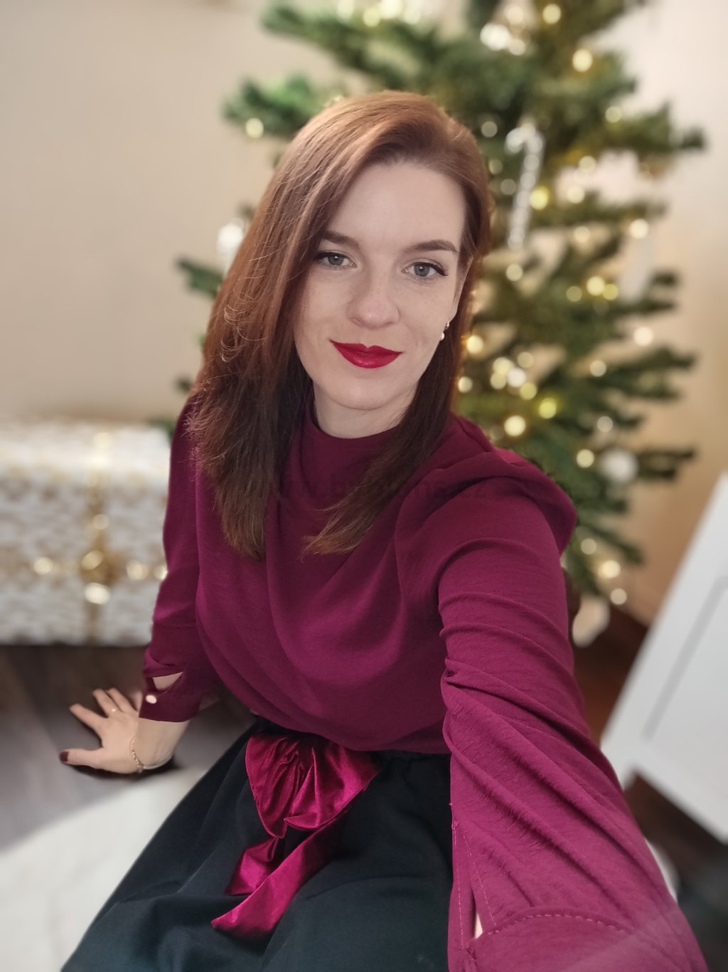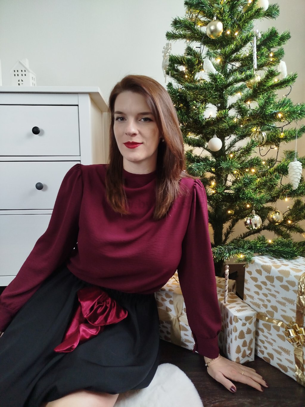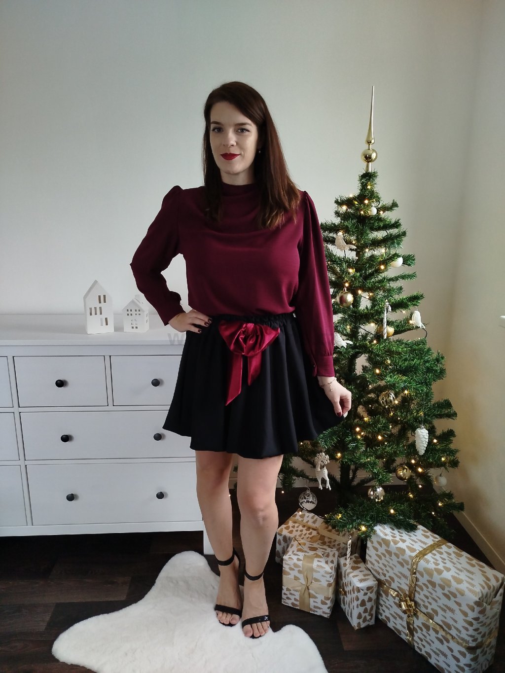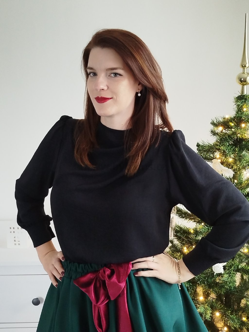 Elegantní halenku s dlouhými nařasenými rukávy zdobí zlaté cvočky na jednom rameni. Zapínání na zlatý knoflík je i na zápěstí a za krkem. Dekolt ozvláštňuje "voda". U krku je mírný stojáček. Halenka je z lehkého materiálu, mírně pruží. Variabilní kousek, který vynosíš v mnoha outfitech.