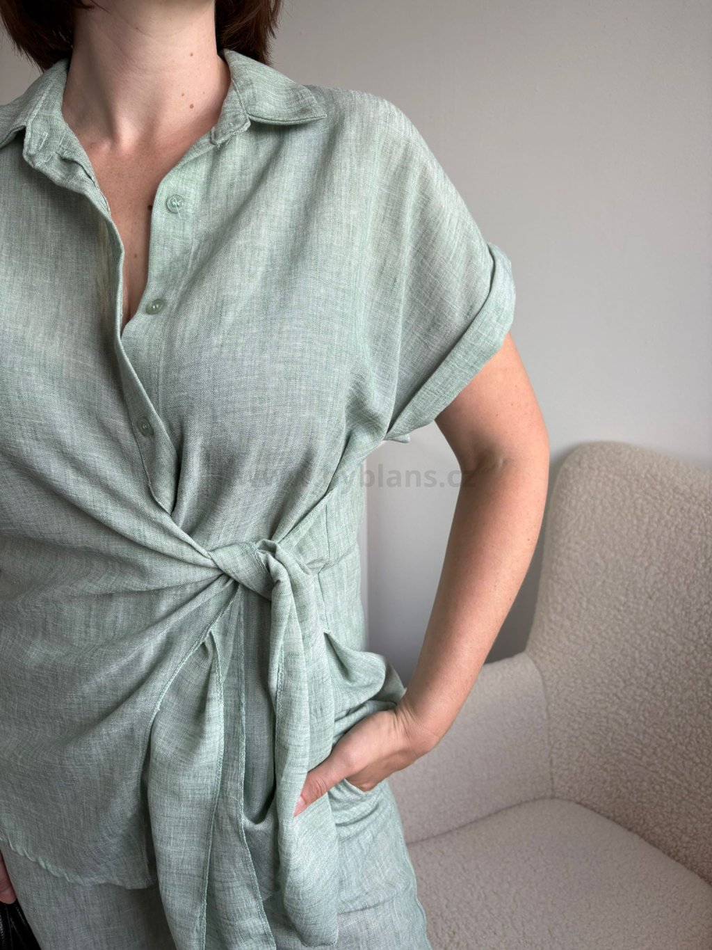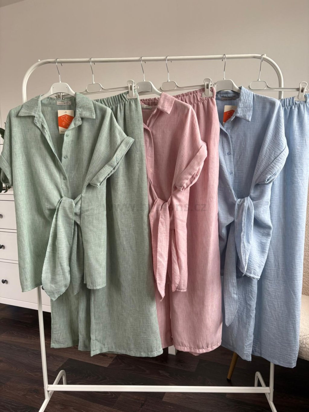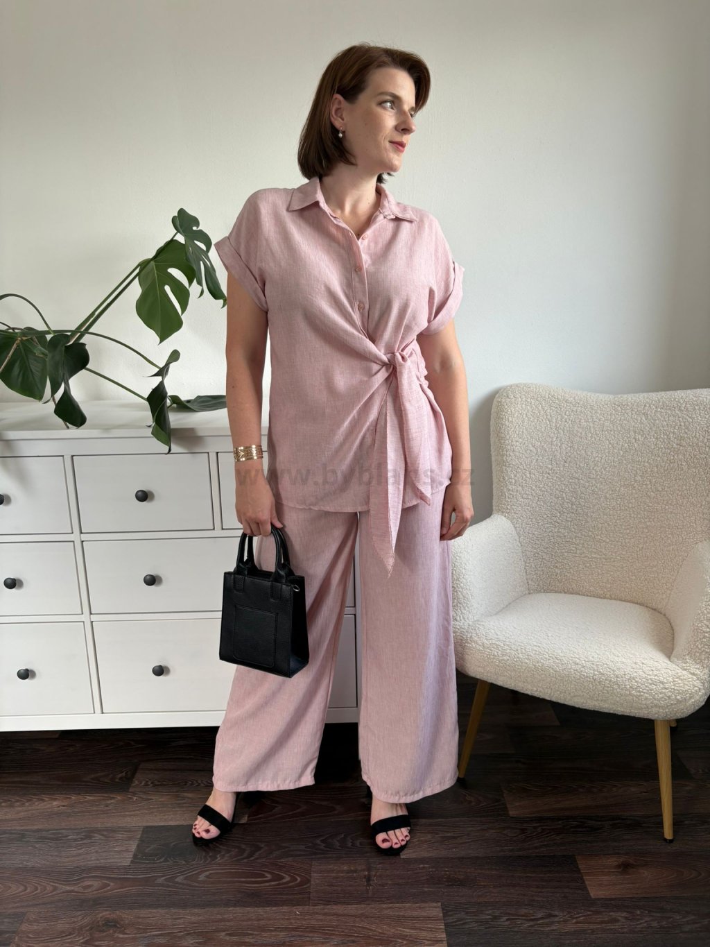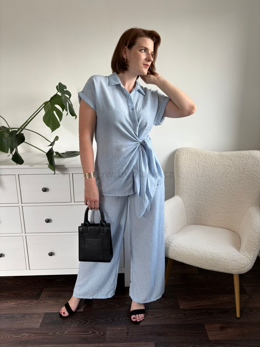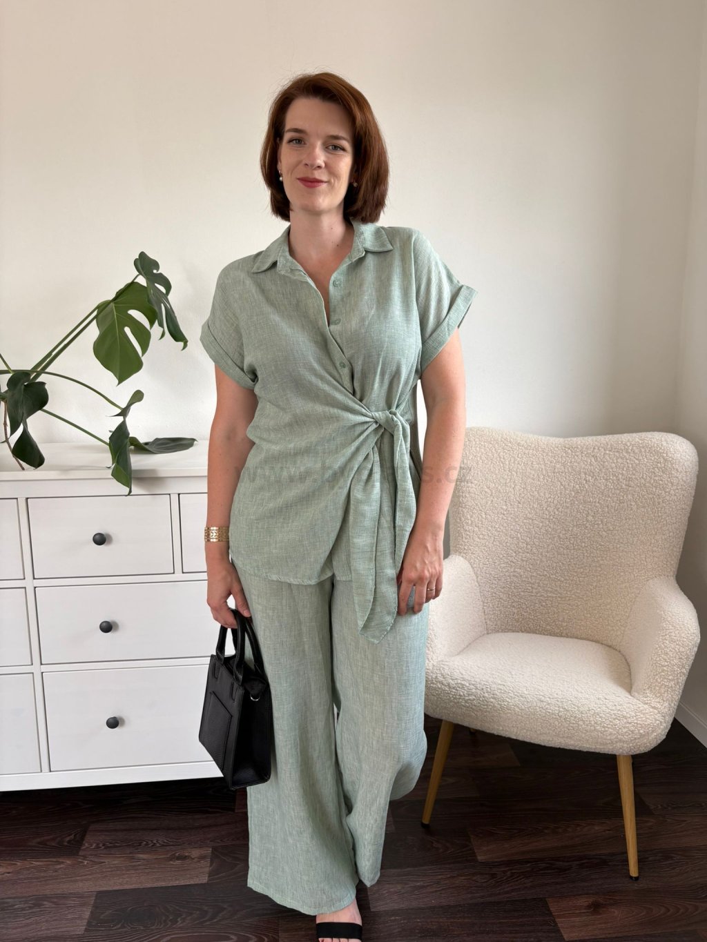 Lehkost, která zaujme na první pohled! Decentně žíhaný komplet s obsahem lnu a viskózy kombinuje styl i pohodlí. Asymetrická košile dodá outfitu šmrnc, volné kalhoty s kapsami a gumou v pase se postarají o komfort bez kompromisů. Vypadat výjimečně nebylo nikdy jednodušší. Velikost UNI (sedne na S – L). Modelka měří 170 cm a běžně nosí velikost M/L.