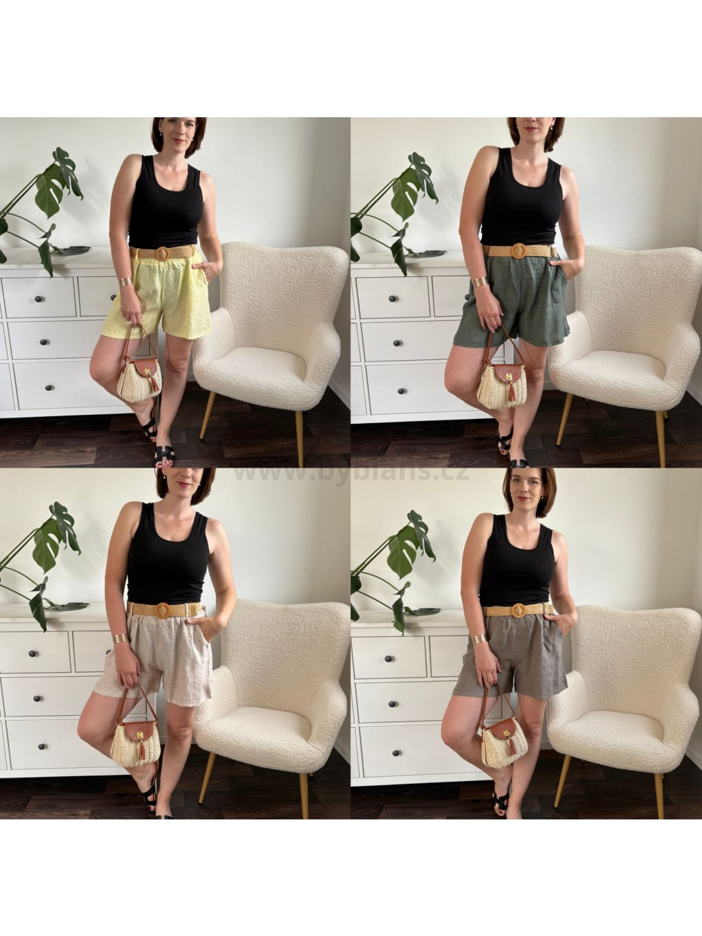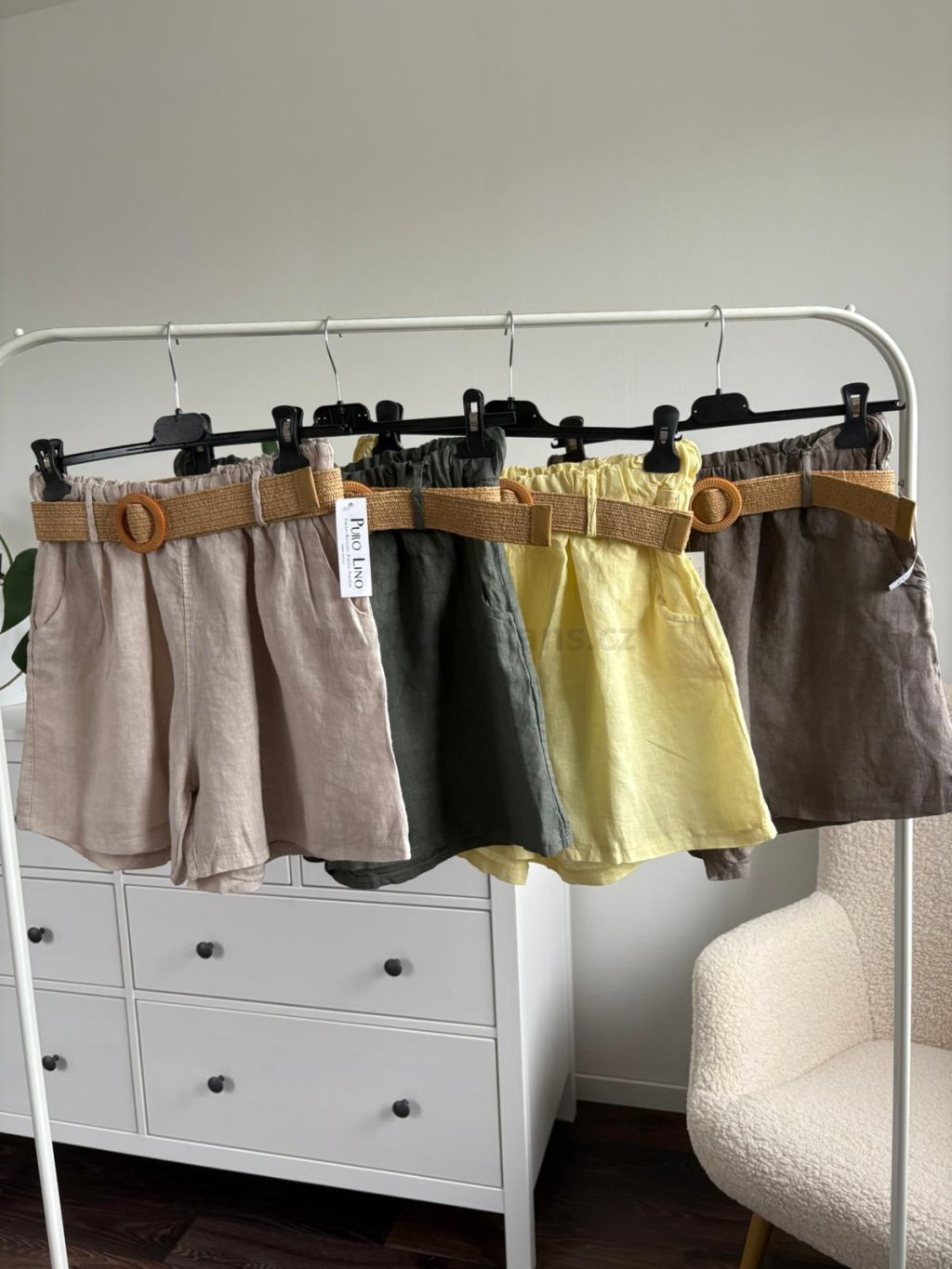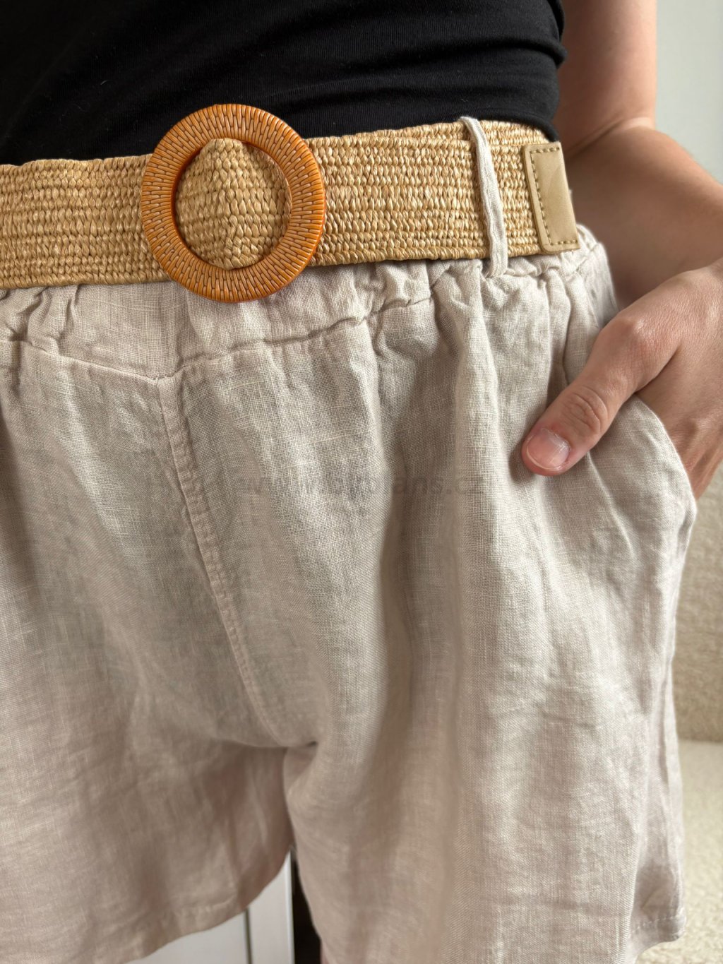 Lehké a prodyšné kraťasy z přírodního lnu. Volný a pohodlný střih, který ti zajistí maximální pohodlí v teplých letních dnech. Pásek je součástí. Velikost UNI (sedne ideálně na M – XL). Modelka měří 170 cm a běžně nosí velikost M/L.