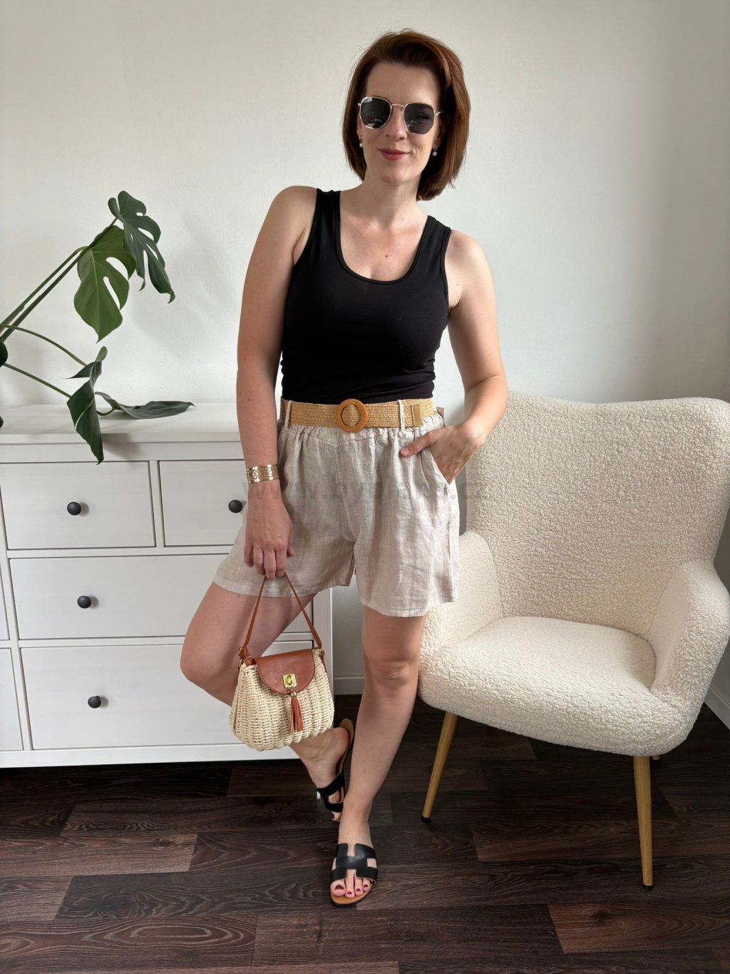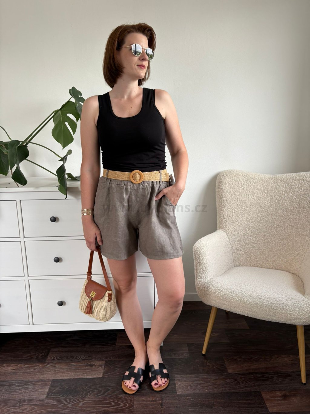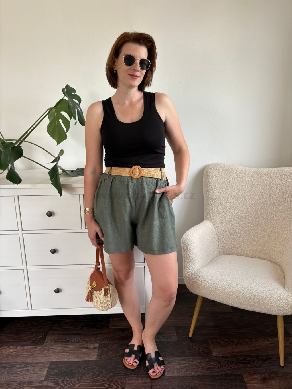 Lehké a prodyšné kraťasy z přírodního lnu. Volný a pohodlný střih, který ti zajistí maximální pohodlí v teplých letních dnech. Pásek je součástí. Velikost UNI (sedne ideálně na M – XL). Modelka měří 170 cm a běžně nosí velikost M/L.