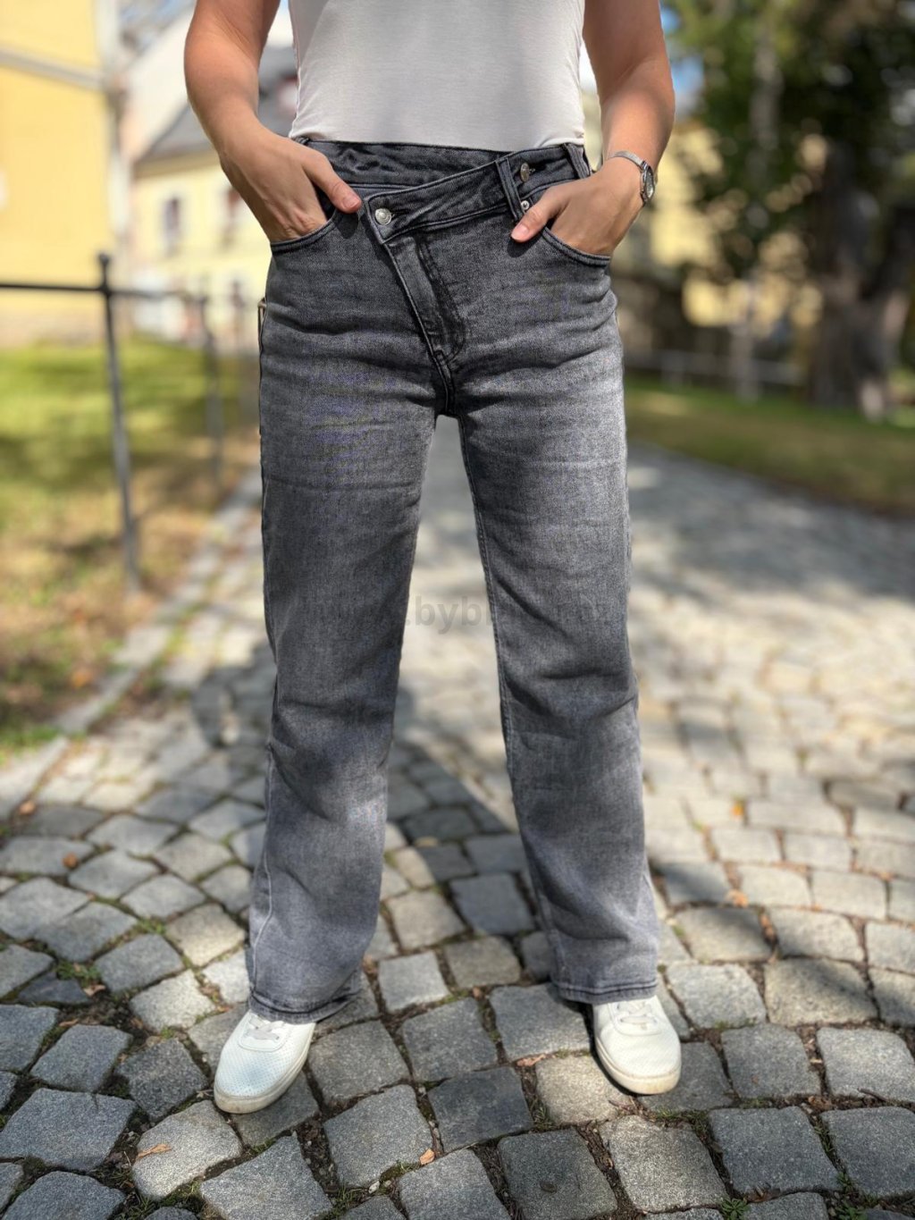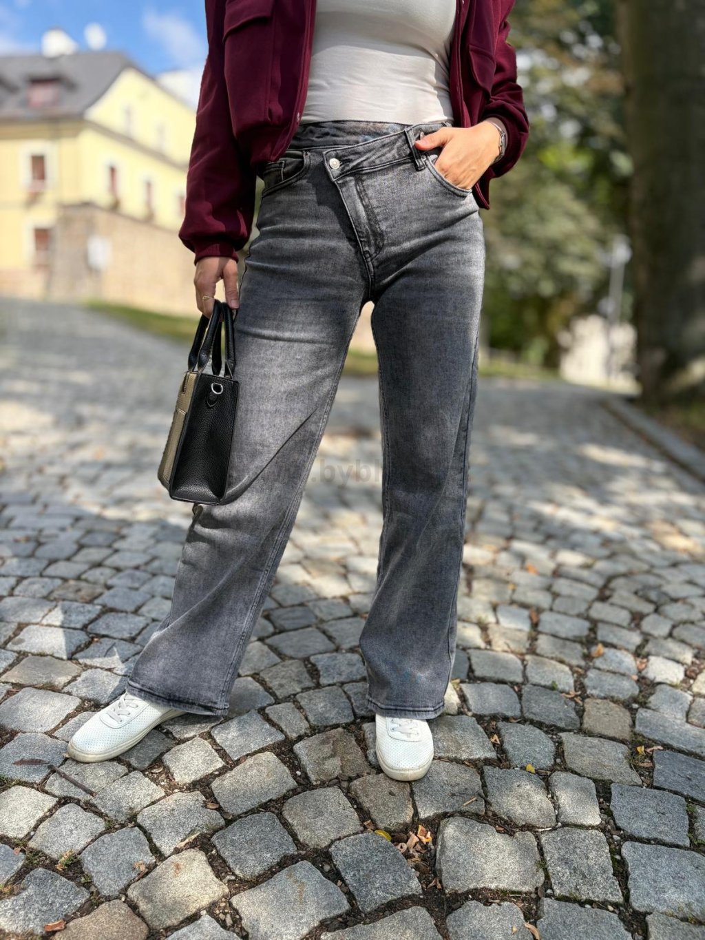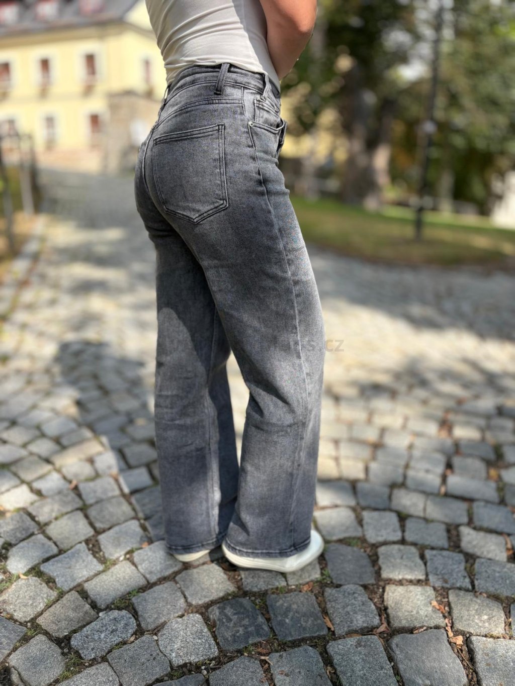 Oblíbené a velmi trendy široké džíny. Jsou poměrně pružné, tudíž se perfektně přizpůsobí postavě. Kvalitní provedení, látka není tenká. Mají efektivní zapínání na dva knoflíky. Modelka měří 170 cm a na sobě má velikost 36.