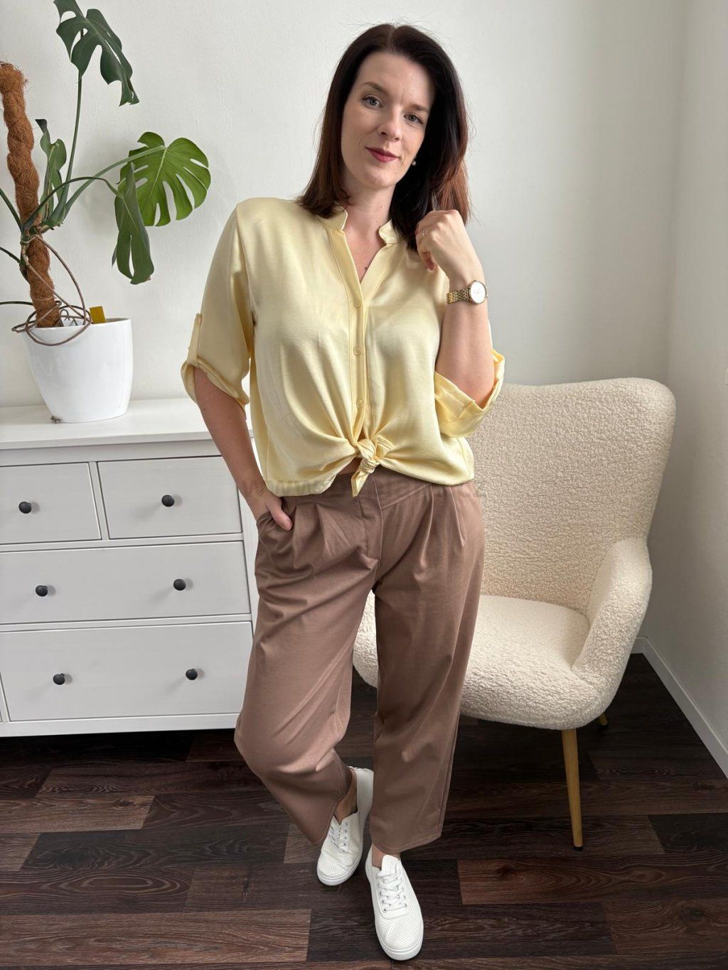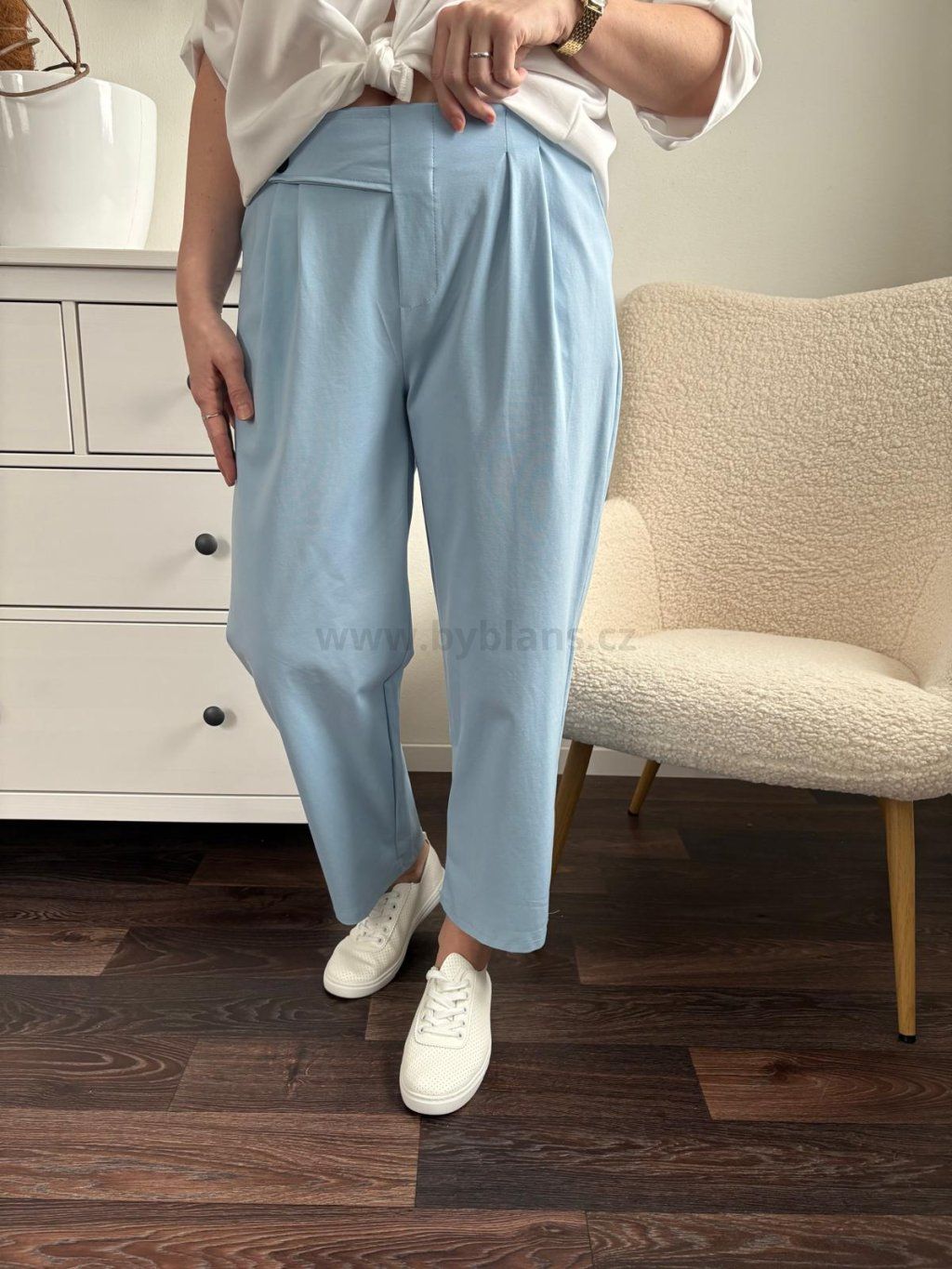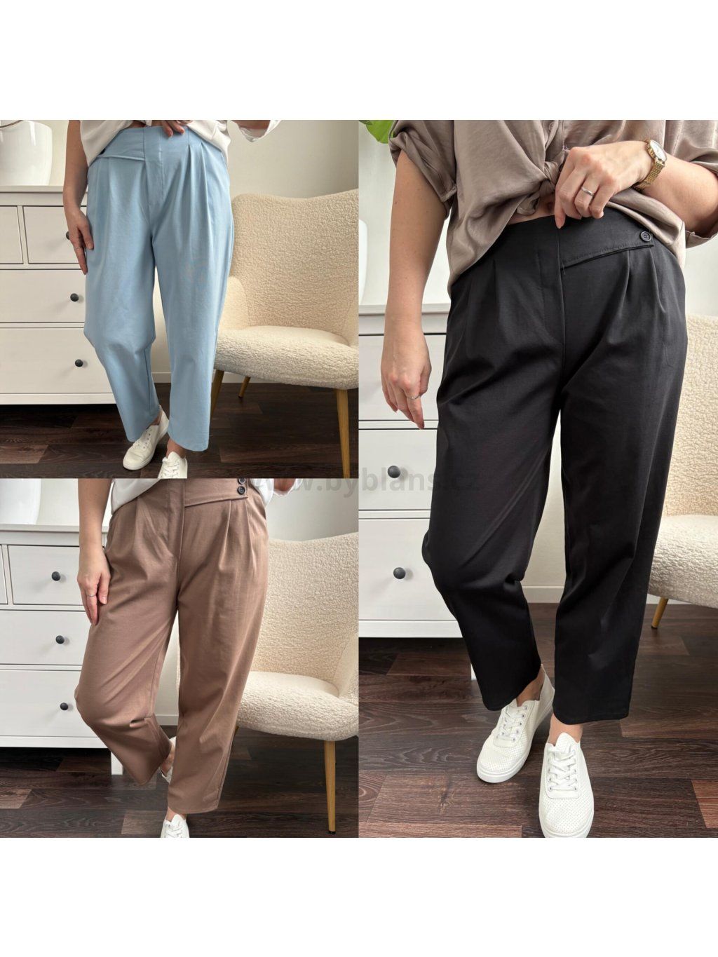 Volnočasové dámské kalhoty s vyšším pasem jsou vhodné na jaro/léto. Volnější střih lichotí postavě a kvalitní materiál ti zajistí pohodlí po celý den. Variabilní kousek, který vynosíš ke všemu. Nohavice se dají i zahnout. Velikost UNI (sedne na M - XL). Modelka měří 170 cm a běžně nosí velikost M/L.